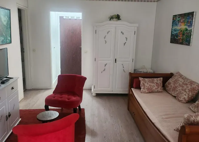 Getaway For Two Cosy Apartment With Balcony设有厨房和配休息区,电视 和Wi-Fi的客房. 公寓距离多维尔赌场有2.8公里,杜维尔海滩有2.9公里,都在公寓旁边.